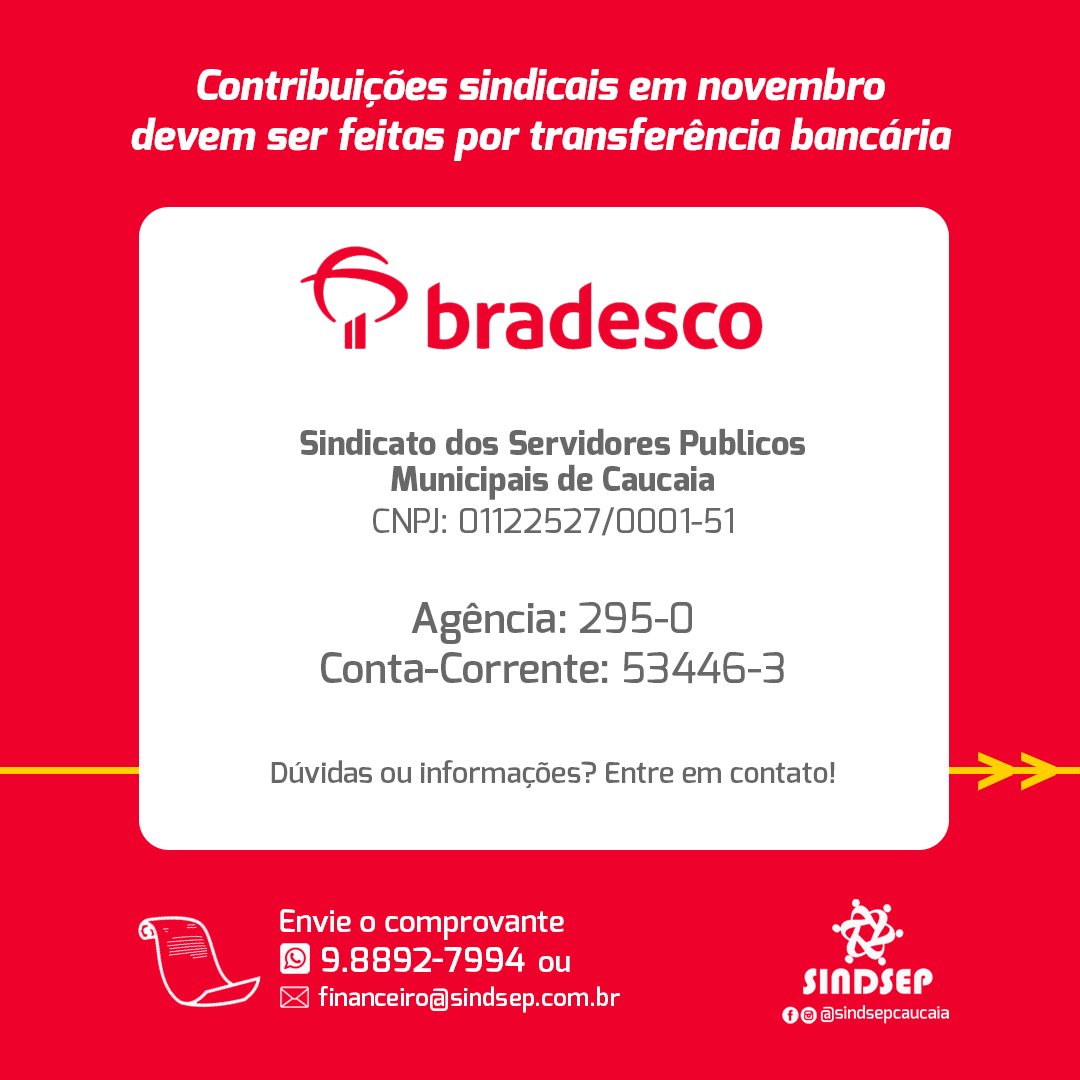 Contribuições sindicais em novembro devem ser feitas por transferência bancária