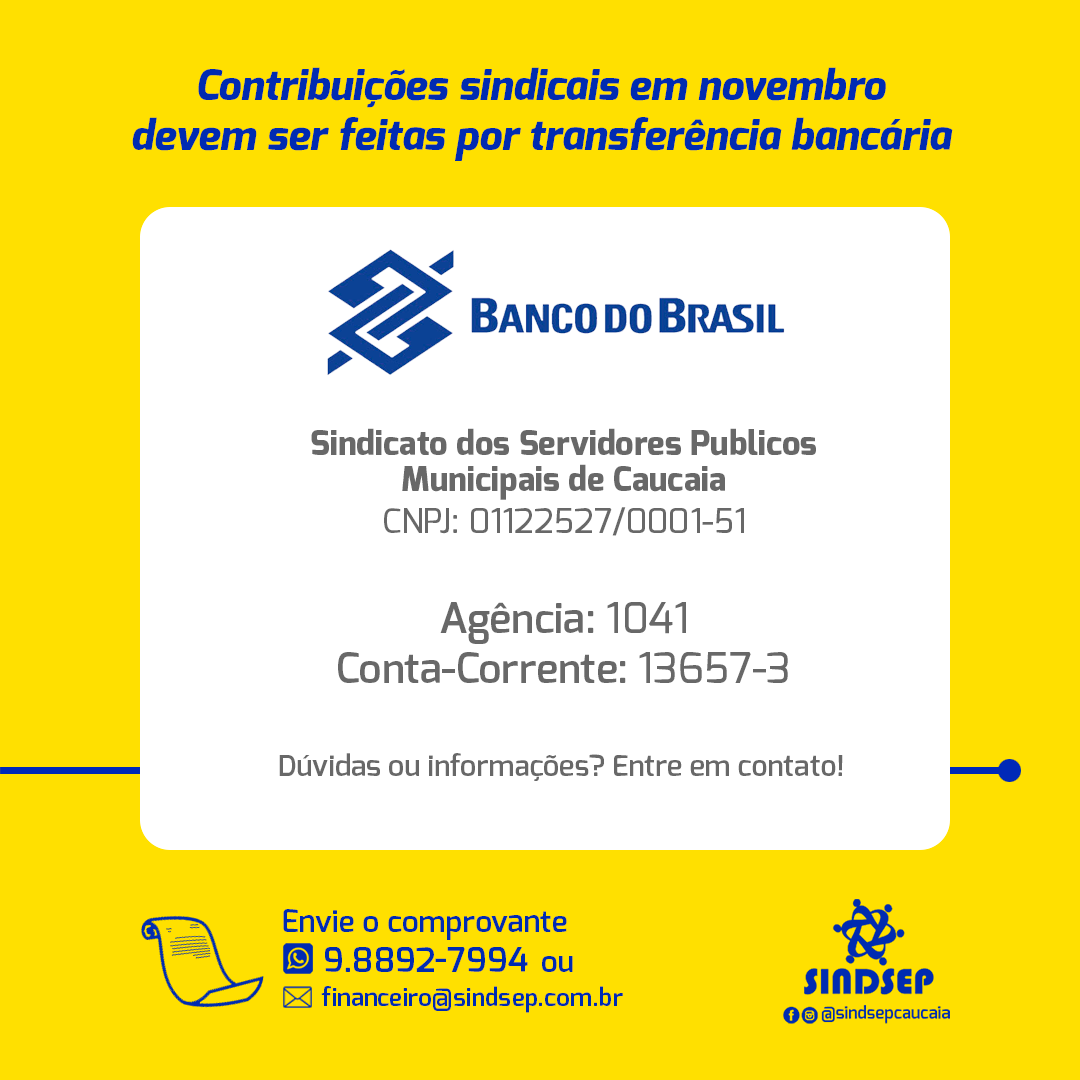 Contribuições sindicais em novembro devem ser feitas por transferência bancária