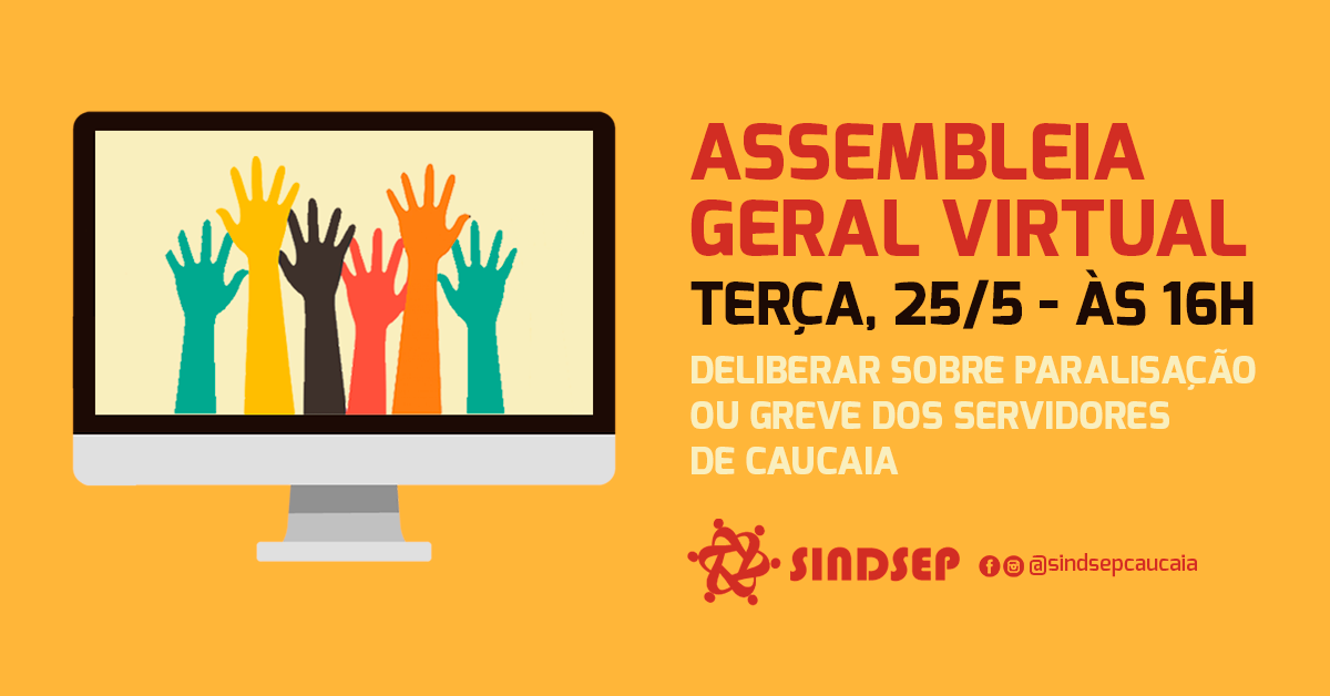 Seguindo as regras estatutárias, o Sindicato dos Servidores Públicos Municipais de Caucaia – SINDSEP CAUCAIA convoca, mediante Edital de Convocação n° 04/2021, os servidores filiados à entidade para participar da Assembleia Geral Extraordinária que será realizada na terça-feira, 25 de maio de 2021, a partir das 16h.